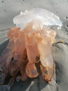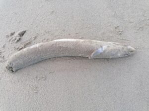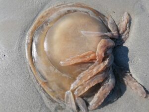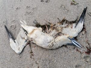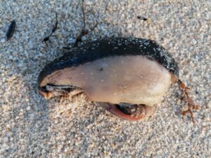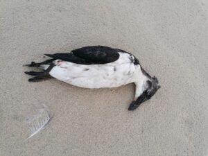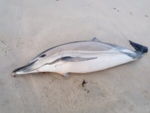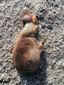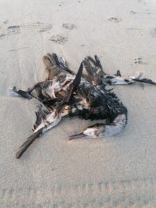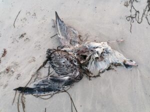 Il n’est pas rare de trouver des animaux morts sur la plage. Poissons, oiseaux, échouages de cétacés (dauphins), méduses, etc.